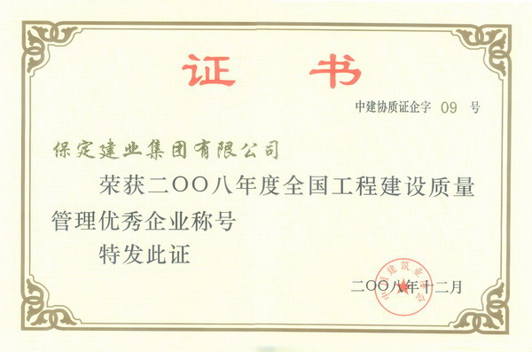 08全國(guó)建設(shè)質(zhì)量管理優(yōu)秀企業(yè)