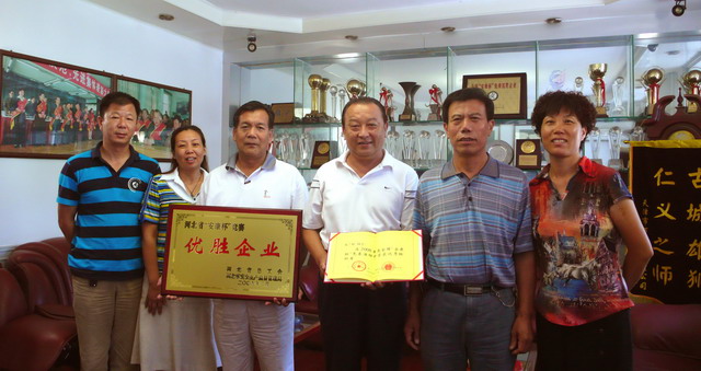 2009年8月12日上午,保定市總工會(huì)有關(guān)領(lǐng)導(dǎo)親臨我集團(tuán)公司,為我集團(tuán)公司頒發(fā)河北省“安康杯”競(jìng)賽活動(dòng)優(yōu)勝企業(yè)獎(jiǎng)牌,為集團(tuán)公司董事長(zhǎng)張?zhí)m柱同志頒發(fā)全國(guó)“安康杯”競(jìng)賽活動(dòng)優(yōu)秀組織者證書。這是我集團(tuán)公司繼榮獲河北省“AAA級(jí)勞動(dòng)關(guān)系和諧單位”后,獲得的又一殊榮,標(biāo)志著我集團(tuán)公司安全管理工作邁上了新臺(tái)階。