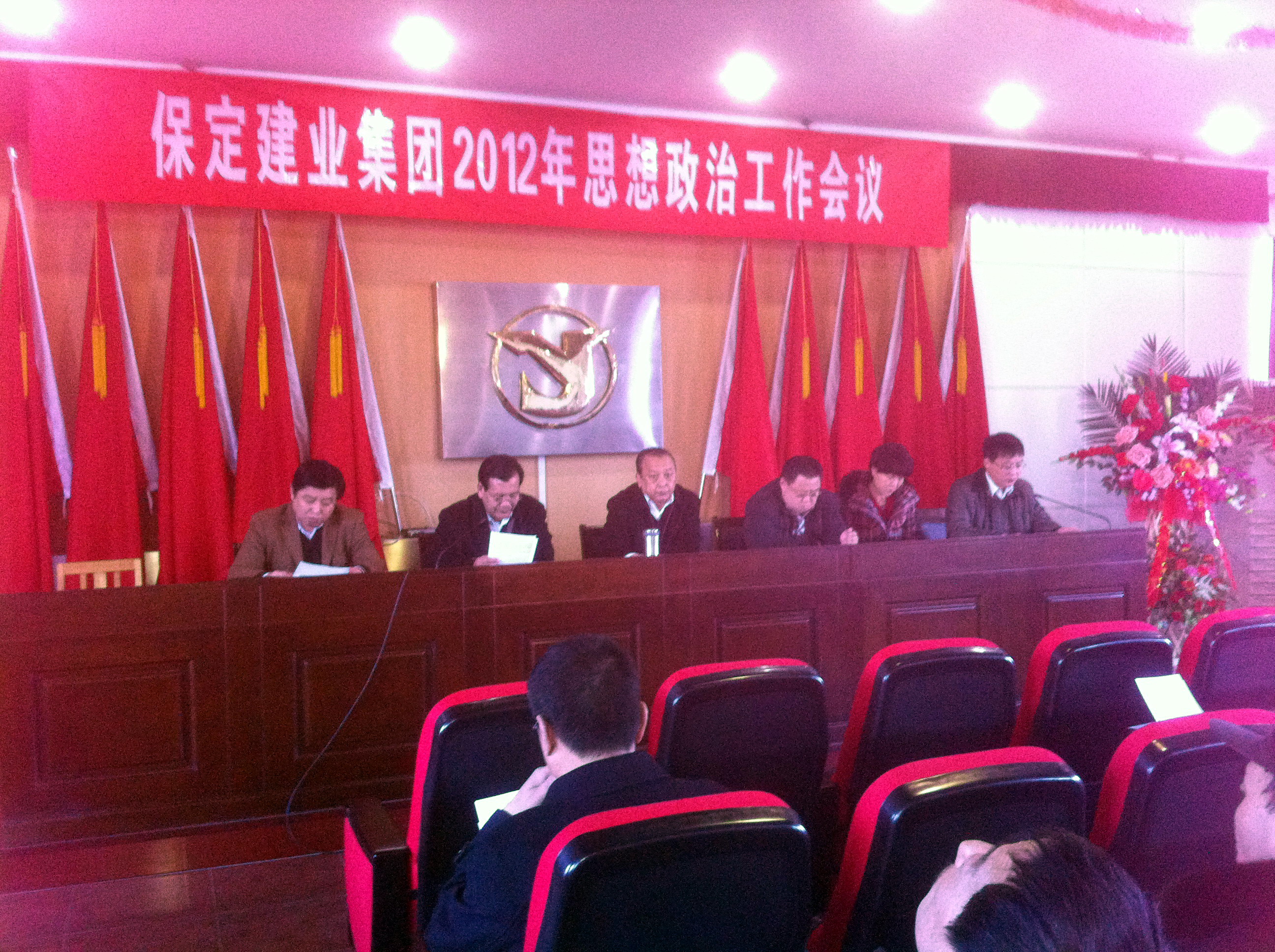 2012年3月14日,保定建業(yè)集團(tuán)有限公司2012年思想政治工作會議在莊嚴(yán)的國歌聲中拉開了序幕,會議由黨委辦公室主任馬亞軍主持,集團(tuán)各公司黨、政、工、團(tuán)、婦、武裝、保衛(wèi)負(fù)責(zé)人參加會議。