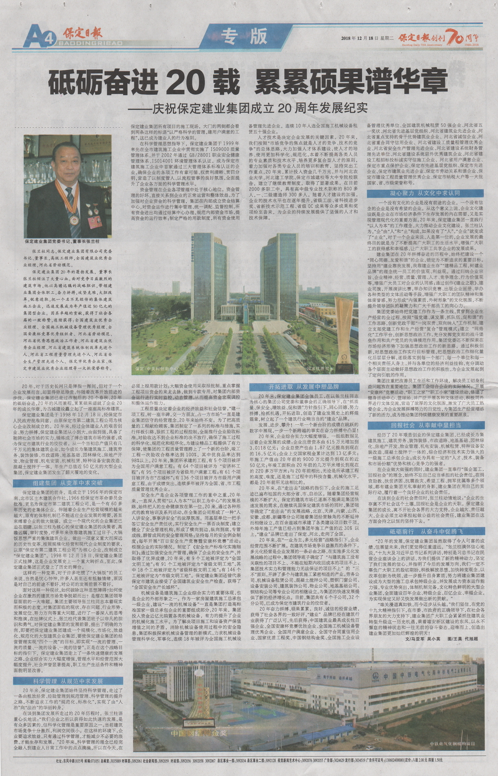 保定日報專版報道集團(tuán)公司成立二十周年