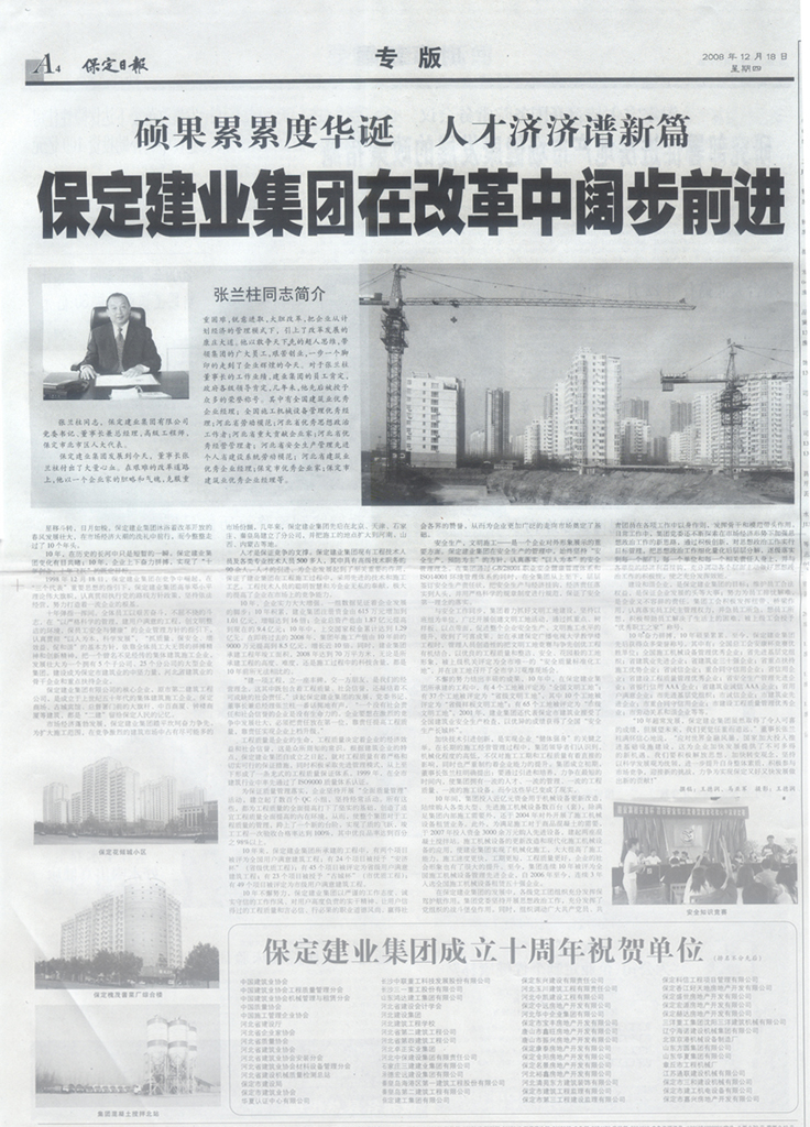 保定日?qǐng)?bào)專版報(bào)道集團(tuán)公司成立十五周年